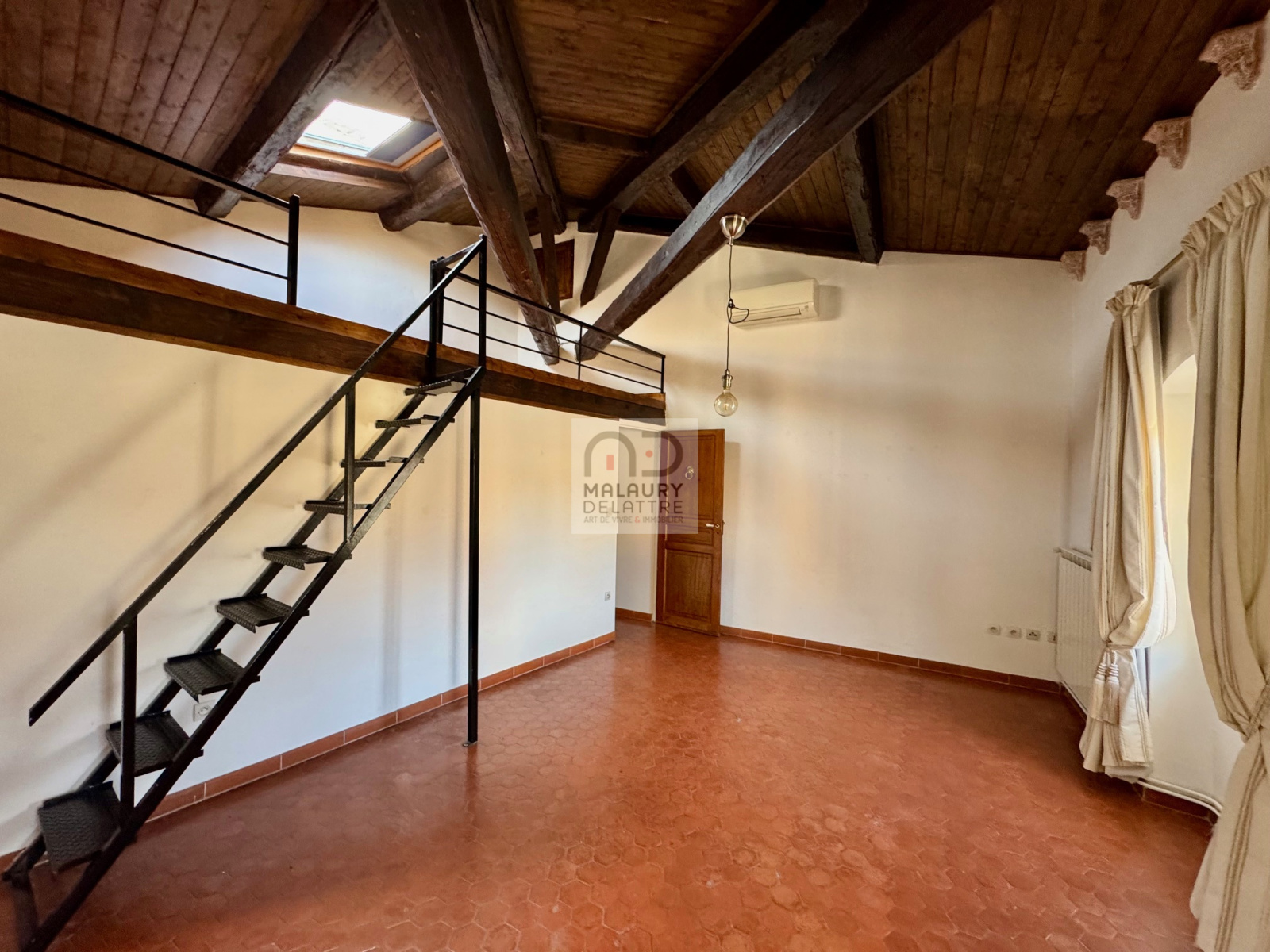 Il dispose de beaux volumes et se compose d'une pièce à vivre d'environ 45 m², exposée sud, baignée de lumière grâce à ses grandes et nombreuses ouvertures, une cuisine ouverte et un bureau en mezzanine complètent cet espace de vie.