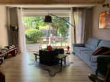 D' une entrée avec placards, d'une grande pièce à vivre de 34 m², comprenant une cuisine ouverte sur l'espace repas et un séjour donnant sur la terrasse et le joli jardin arboré au sud.