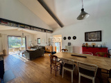 Très fonctionnelle et confortable, la maison a fait l'objet d'une rénovation récente de qualité. Elle se compose d'une entrée, d'un superbe espace de vie très lumineux disposant d'une belle hauteur sous plafond. Le séjour et la salle à manger développent env 52 m² avec une cheminée qui s'élance vers l'espace bibliothèque en mezzanine (surface en sus), grande cuisine de 19 m² aux allures de jardin d'hiver, entièrement équipée.